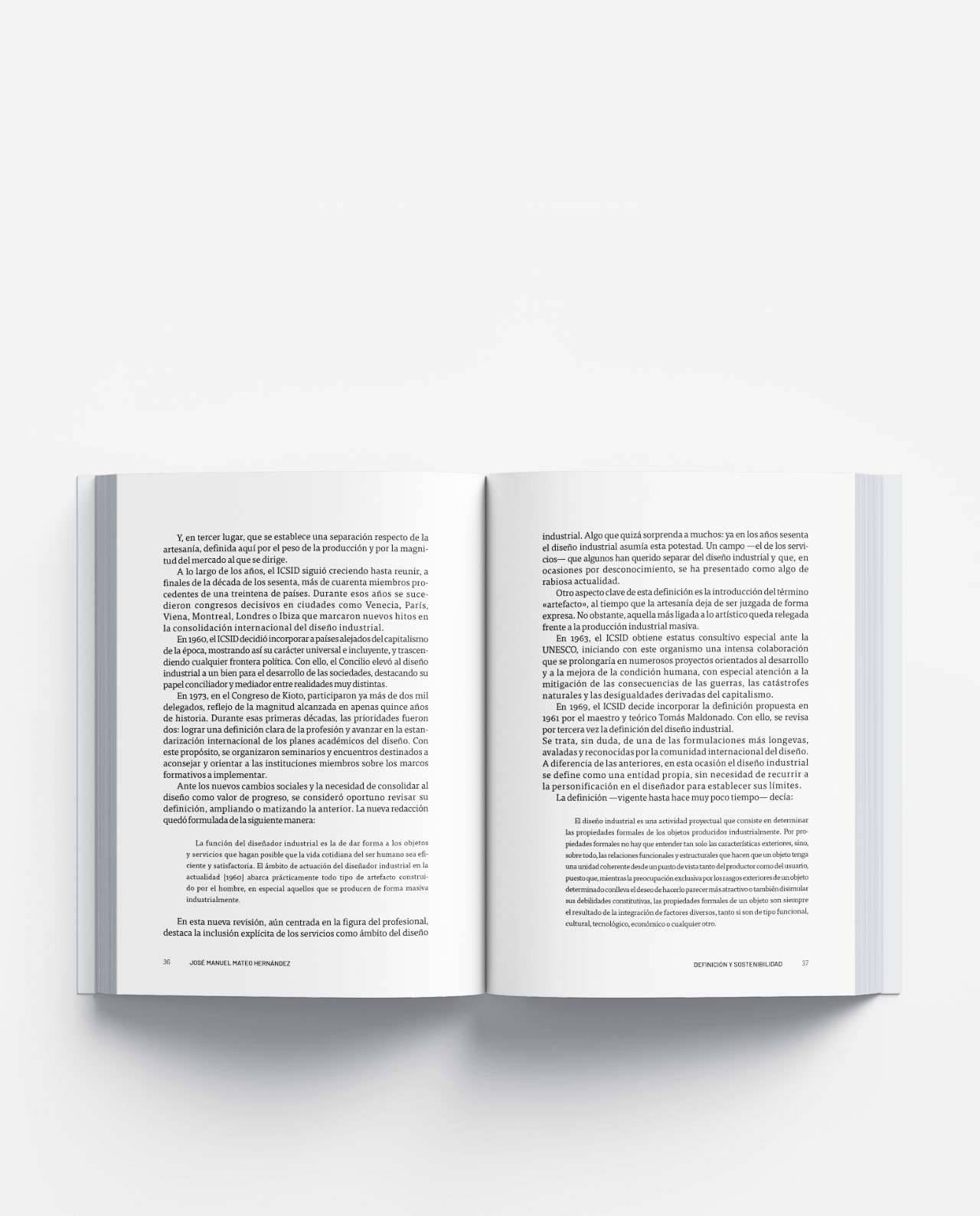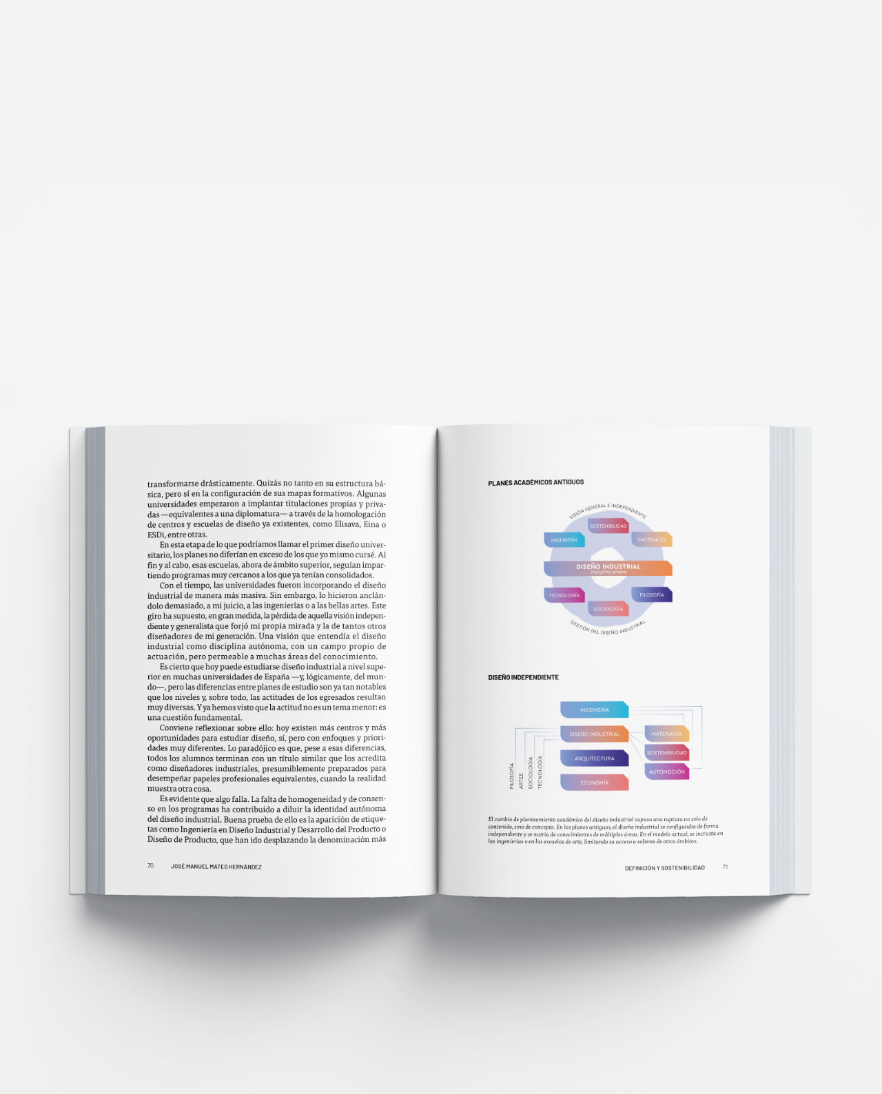 En el primero, La importancia de una definición del diseño industrial, José Manuel Mateo Hernández recorre la historia y evolución del pensamiento del diseño desde el ICSID hasta la WDO, revelando cómo la pérdida de una definición rigurosa ha derivado en un vacío ideológico que afecta tanto a la academia como a la profesión.