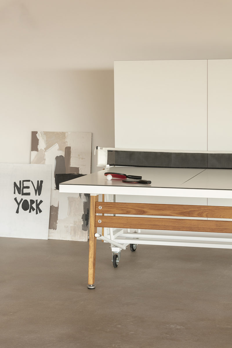 En cuanto al RS Stationary, fue la primera mesa de ping pong diseñada por Rafael Rodríguez. En esta nueva andanza plasma todo lo aprendido en sus años de experiencia con los futbolines, ese expertise en el que juego, diseño y funcionalidad se funden en una colección que hace del juego todo un lujo. También es el autor de la RS Folding, que es la versión plegable de la mesa de ping pong RS Stationary. Rafael Rodríguez vuelve a firmar un nuevo diseño en el que pone todo su saber hacer y su ingenio para elevar la funcionalidad del plegado a un nivel superior, construyendo una pieza en la que el diseño y la versatilidad se ponen al servicio del espacio, el juego y, por supuesto, de los que la disfrutan.