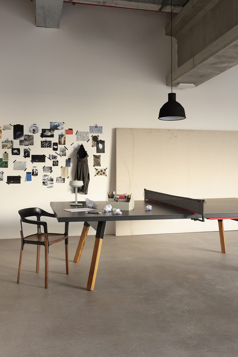 La mesa de ping-pong You and Me es un diseño del estudio barcelonés A.P.O., dirigido por Antoni Pallejà. Su forma de entender el diseño impregna cada uno de los proyectos que aborda. Para él, la elegancia brota de la simplicidad formal. Lo que no suma, está de más. Y la exquisitez de los detalles es la obsesión de su trabajo.